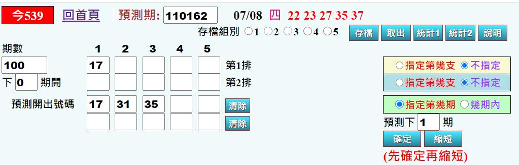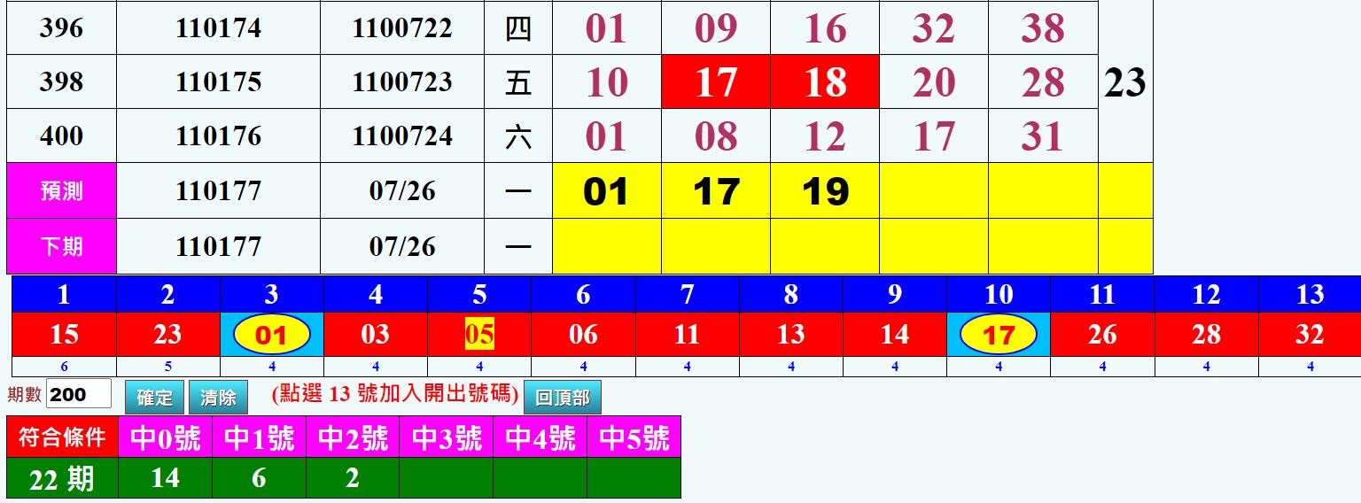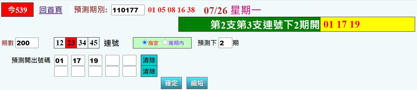 • 539每周周牌 ※限VIP2(含)以上